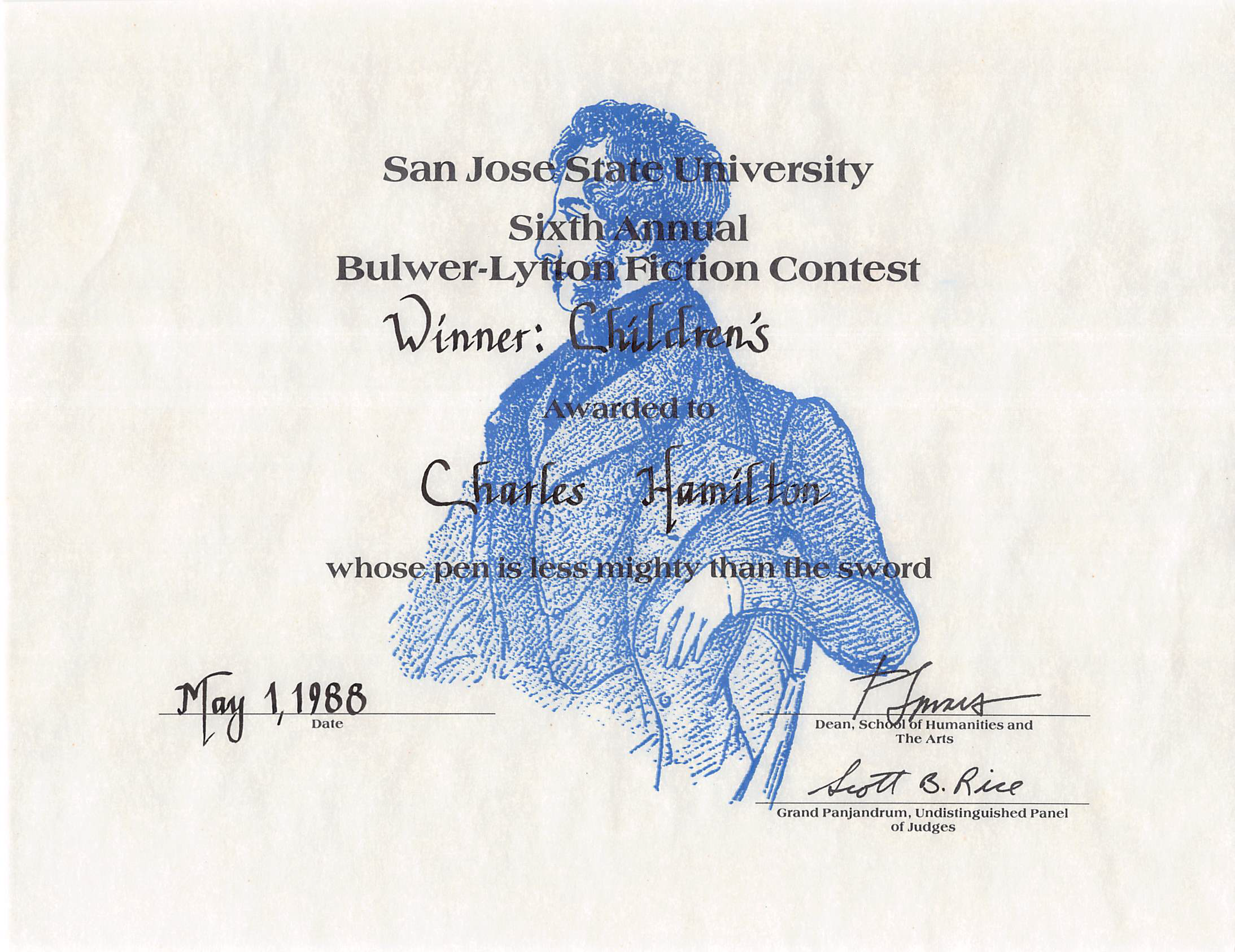 My contributions to this distinguished(?) literary(?) event(?) date back to 1988, when I won the Children's category.